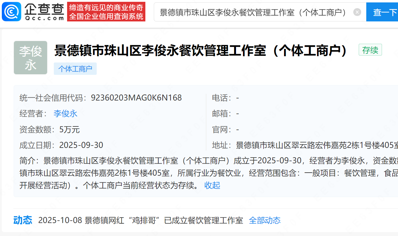 10月8日,景德镇鸡排哥发视频向全国各地来到家乡景德镇游玩和打卡买鸡排的游客表示感谢。鸡排哥表示近期天气炎热股票配资平台查询网,游客为买鸡排有时需排队几个小时,对此他感到很不好意思,在此向游客致歉,并称10月9日他将休息一天。9月30日,景德镇市珠山区李俊永餐饮管理工作室(个体工商户)成立,经营者为李俊永(鸡排哥),资金数额5万元,经营范围包含餐饮管理、食品销售。第三方数据显示,鸡排哥视频平台粉丝数已超94万,其中国庆8天假期涨粉超40万,近30日涨粉62.35万。商业化水平显示,其1-20s、21-60s、60s以上视频广告报价均为10元。